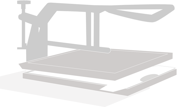 2. Durch hohe Hitze und Druck wird das Motiv von der Trägerfolie auf das Textil übertragen.